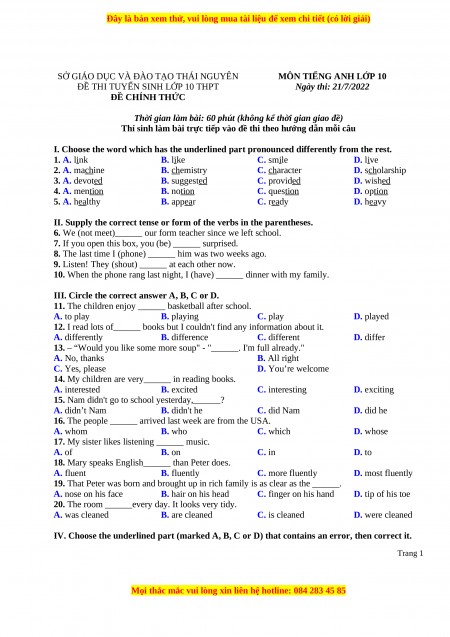 - MÔN TIẾNG ANH LỚP 10