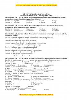 Đề thi vào 10 Tiếng Anh chính thức năm 2022 - 2023 (Đề 37)