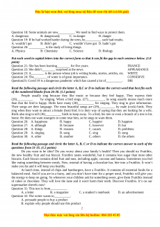pronunciation in each of the following questions. (0.4 point) Question 1: A. padal B. satisfied C. land D. plan Question 2: A. seaside B. realize C. scream D. seat