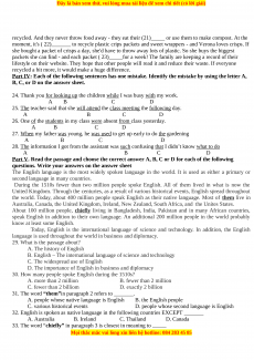 Part V. Read the passage and choose the correct answer A, B, C or D for each of the following