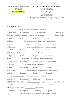 - Tailieugiaovien.com.vn giới thiệu Đề thi chính thức môn Tiếng Anh vào 10 Thành phố Đà Nẵng năm 2023-2024 nhằm giúp Giáo viên có thêm tài liệu tham khảo ra đề thi Tiếng Anh vào 10.
