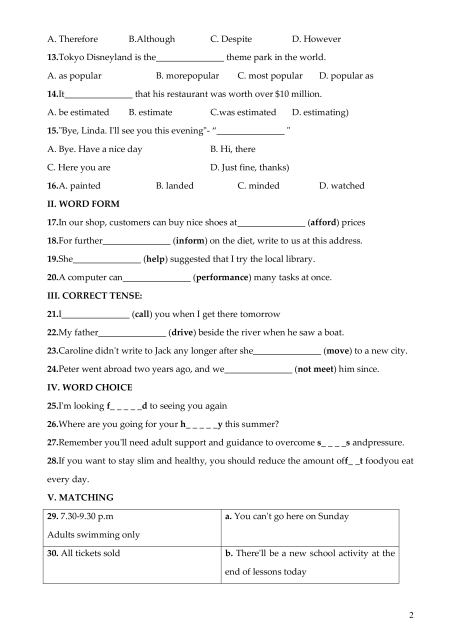 24.Peter went abroad two years ago, and we_______________ (not meet) him since. IV. WORD CHOICE