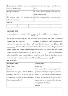 33. computer club - first meeting after e. In the evening, children may not come school this afternoon! in Answer: VI. CLOZE TEXT anywhere from ago with faster BICYCLES