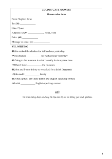 expensive ones, of course, with a nice card saying 'Happy Birthday'! Stephen 3 GOLDEN GATE FLOWERS Flower order form From: Stephen Jones To: (38) ______________ Date: 7 June