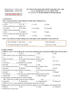 Thời gian làm bài: 60 phút (Không kể thời gian phát đề) ĐỀ THI CHÍNH THỨC I. LISTENING