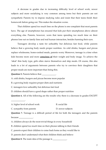 Question 9. The phrase “conscious of” in the last paragraph is closest in meaning to _____________. A. fond of B. afraid of C. aware of D. tired of