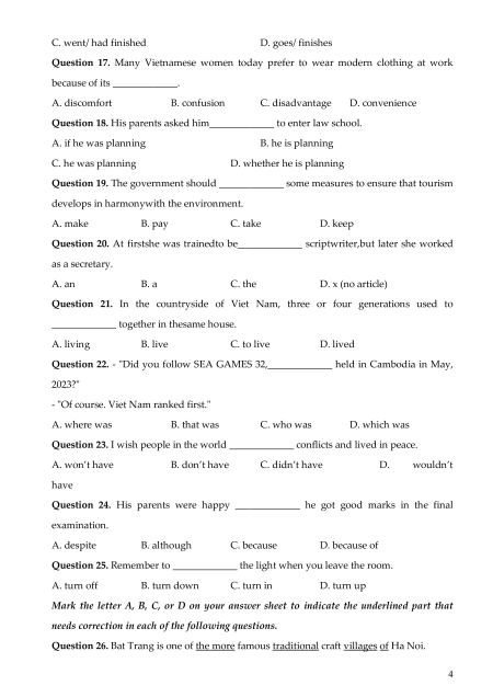 Question 26. Bat Trang is one of the more famous traditional craft villages of Ha Noi. 4