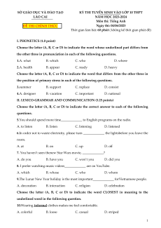 Thời gian làm bài: 60 phút ( không kể thời gian phát đề) I. PHONETICS (1.0 point)