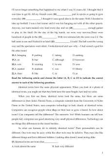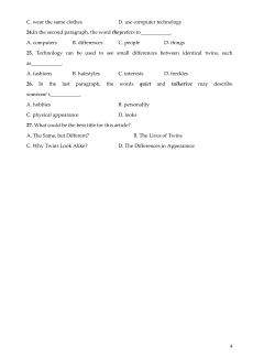 23. Identical twins are twins that_____________. A. look almost the same B. look very different 3 C. wear the same clothes D. use computer technology
