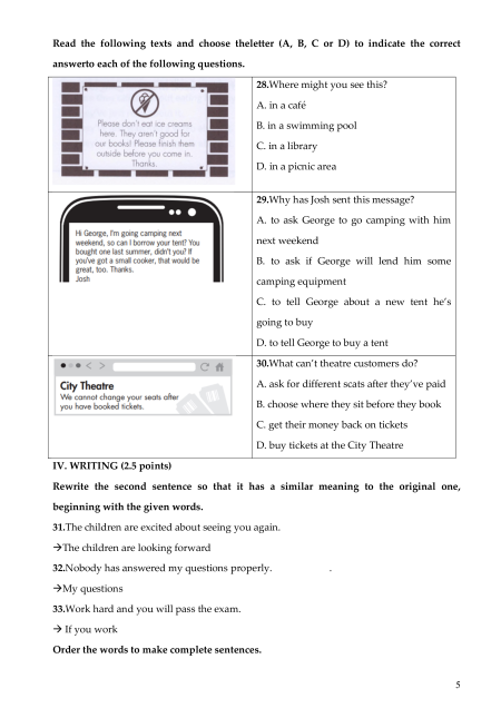 IV. WRITING (2.5 points)