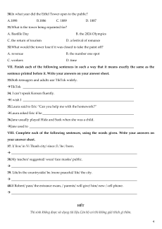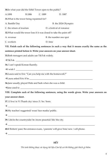 KỲ THI TUYỂN SINH VÀO LỚP 10 THPT HẬU GIANG NĂM HỌC 2023-2024 Môn thi: Tiếng Anh ĐỀ THI CHÍNH THỨC Ngày thi: 07/06/2023