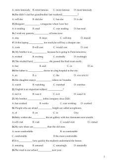 50. Neil Armstrong became the first person to walk on the moon on1969. A. became B. first C.to walk D. on PARTIII. READING (3.0 points)