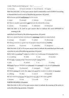 to theunderlined word in each of thefollowing questions. (0.2 point)