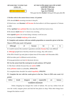 KỲ THI TUYỂN SINH VÀO LỚP 10 THPT LONG AN NĂM HỌC 2023-2024 Môn thi: Tiếng Anh ĐỀ THI CHÍNH THỨC Ngày thi: 07/06/2023