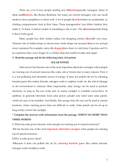 V. Read the passage and do the following tasks. (2,0 points) SOLAR POWER