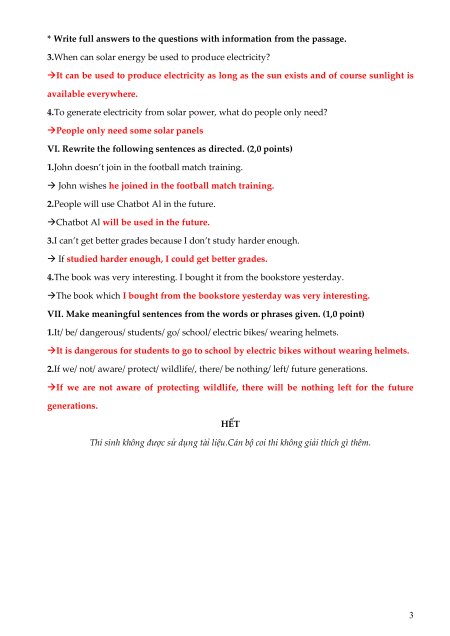 Thí sinh không được sử dụng tàỉ liệu.Cán bộ coi thi không giải thích gì thêm. 3