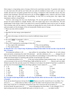 growing food. Environmental pollution also brings ugliness to man's natural (5) _______ world. 0. A. an B. a C. the D. ∅ 1. A. that B. whom C. who D. which 2. A. and B. but C. so D. or 3. A. many B. much C. one D. another 4. A. cure B. cause C. make D. treat 5. A. beautiful B. beauty C. beautifully D. beautify
