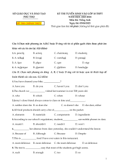 Đề thi vào 10 Tiếng Anh Tỉnh Phú Thọ năm 2023-2024