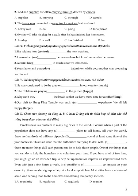 CâuIV. Viếtdạngđúngcủađộngtừtrongngoặcđểhoànthànhcáccâusau. (0,8 điểm)