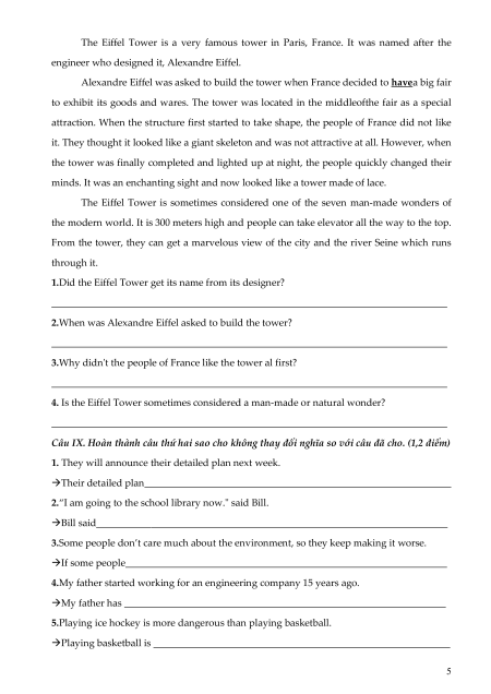 Câu VIII. Đọc đoạn văn sau và trả lời các câu hỏi. (0,8 điểm) 4