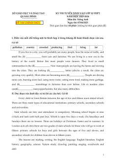 Đề thi vào 10 Tiếng Anh Tỉnh Quảng Bình năm 2023-2024