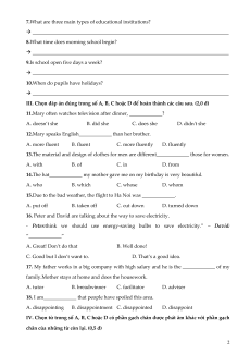 III. Chọn đáp án đúng trong số A, B, C hoặc D để hoàn thành các câu sau. (2,0 đ)