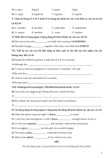 VII. Viết lại các câu sau bắt đầu bằng từ hoặc cụm từ cho sẵn sao cho nghĩa của câu không thay đổi (1,5 đ)