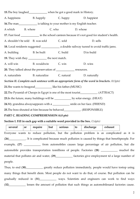 Section I. Fill in each gap with a suitable word provided in the box. (1.6pts) several or require but serious to discharge exhaust