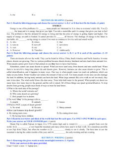 Part 1: Read the following passage and choose the correct answer A, B, C or D that best fits the blanks. (1 point) ENERGY