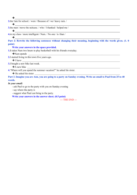 Part 2: Rewrite the following sentences without changing their meaning, beginning with the words given. (1. 0 point)