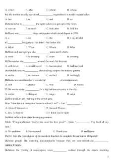 Part 1. Choose the letter A, B, C, or D to indicate the correct word or phrases that best fits each of the