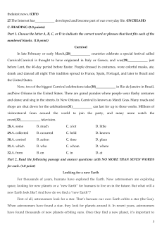 Part 1. Choose the letter A, B, C, or D to indicate the correct word or phrases that best fits each of the numbered blanks. (1.0 point) Carnival