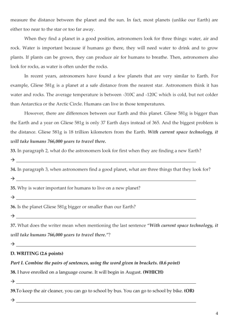 Part 2. Read the following passage and answer questions with NO MORE THAN SEVEN WORDS for each. (1.0 point) Looking for a new Earth