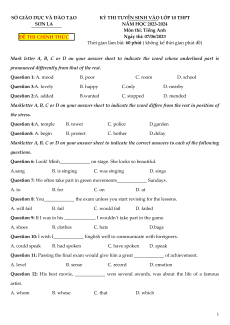Đề thi vào 10 Tiếng Anh Tỉnh Sơn La năm 2023-2024