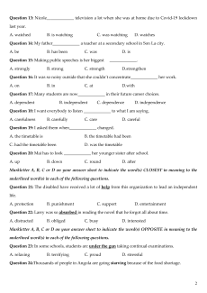 Question 21: The disabled have received a lot of help from this organization to lead an independent life. A. protection B. punishment C. support D. entertainment