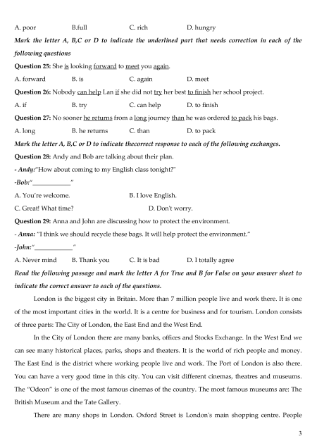 Question 24:Thousands of people in Angola are going starving because of the food shortage. 2 A. poor B.full C. rich D. hungry