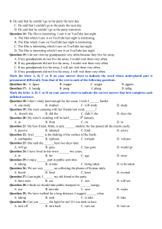 Question 14: The film is interesting. I saw it on YouTube last night.