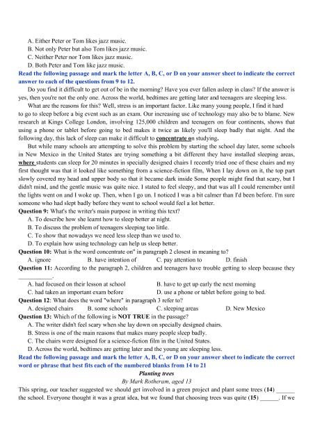 Question 8: Peter dislikes jazz music. Tom does, too.