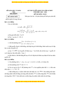 Đề thi vào 10 Toán Hải Phòng năm 2023-2024