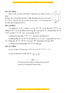 là 37,68cm. Tính thể tích c a ủ chi ti t ế máy đó (l y ấ 3 ,1 ; 4 k t ế quả làm tròn đ n ế ch ữ s ố th p ậ phân th ứ 2). Hình 1 Bài 5. (3,0 đi m ể ) Cho đư ng