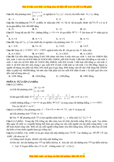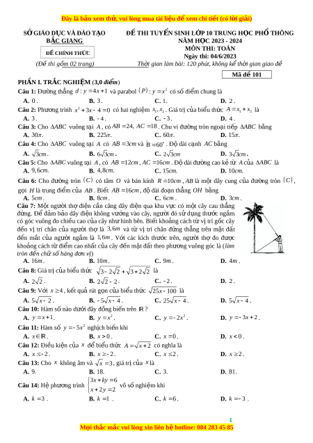 Đây là bản xem th , vu ử i lòng mua tài li u ệ đ xe ể m chi ti t ế (có l i ờ gi i ả ) S Ở GIÁO D C Ụ VÀ ĐÀO T O Ạ Đ Ề THI TUY N Ể SINH L P Ớ 10 TRUNG H C Ọ PH Ổ THÔNG B C Ắ GIANG NĂM HỌC 2023 - 2024 MÔN THI: TOÁN Đ C Ề HÍNH TH C Ứ Ngày thi: 04/6/2023 (Đề thi g m ồ 02 trang) Th i