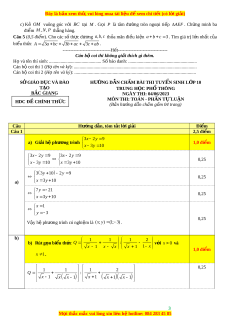 ộ oi thi 2 (Họ tên và ký): ...................................................................................................... S Ở GIÁO D C Ụ VÀ ĐÀO HƯ N Ớ G D N Ẫ CH M Ấ BÀI THI TUY N Ể SINH L P Ớ 10 T O Ạ TRUNG H C Ọ PH Ổ THÔNG B C Ắ GIANG NGÀY THI: 04/06/2023 MÔN THI: TOÁN - PH N Ầ T L Ự U N Ậ HDC ĐỀ CHÍNH TH C Ứ (Bản hư ng ớ dẫn chấm g m ồ 04 trang) Câu