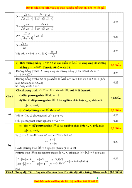 2 b b 1 (th a ỏ mãn điều ki n ệ b 2023 ) 0,25 KL: Vậy a 1 ; b 1. Cho phư n ơ g trình 2
