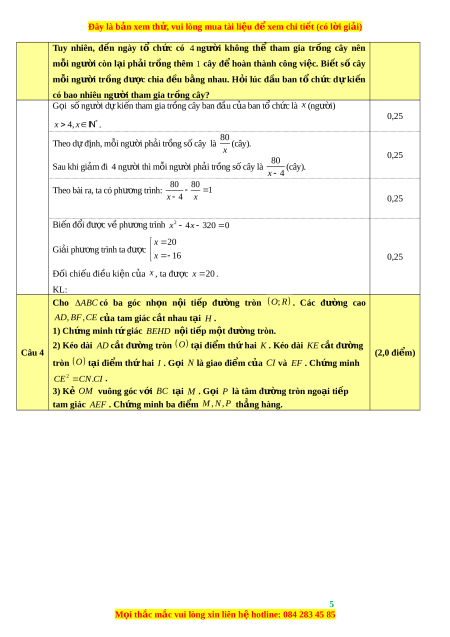 Câu 3 (1,0 đi m ể ). Trong d p ị T t ế tr ng ồ cây đ u ầ năm, ban tổ ch c ứ dự ki n ế tr ng ồ 80 cây xanh. Tuy nhiên, đến ngày tổ ch c ứ có 4 ngư i