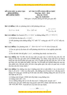 Đây là bản xem th , vu ử i lòng mua tài li u ệ đ xe ể m chi ti t ế (có l i ờ gi i ả ) S G Ở IÁO D C Ụ & ĐÀO TẠO KỲ THI TUY N Ể SINH L P Ớ 10 THPT BÌNH DƯ N Ơ G Năm h c: o 2023 – 2024 ĐỀ CHÍNH TH C Ứ Môn thi: TOÁN Ngày thi: 02/06/2023 Th i