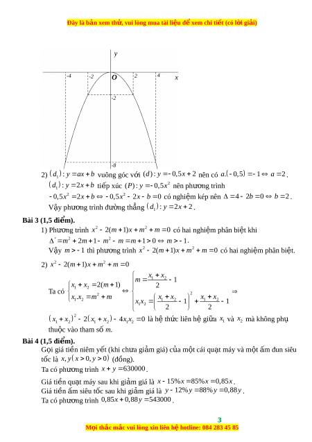 ệ ữ x và x mà không phụ 1 2 1 2 1 2 là h th c liên h gi a 1 2 thu c ộ vào tham s ố m. Bài 4 (1,5 đi m ể ). G i ọ giá ti n ni ề êm y t ế (khi ch a gi ư m ả giá) c a ủ m t ộ cái qu t ạ máy và m t ộ m ấ đun siêu
