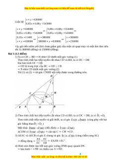 ắ nhau CD và BD, ta có DC = DB Hai bán kính OC = OB OD là trung tr c c ự a ủ BC OD CB N nhìn CD dư i ớ m t ộ góc vuông (2) T ( ừ 1) và (2) t gi ứ ác CNHD n i ộ ti p đ ế ư c ợ trong đư ng t ờ ròn. 2) Theo tính ch t ấ hai ti p t ế uy n c ế t