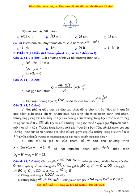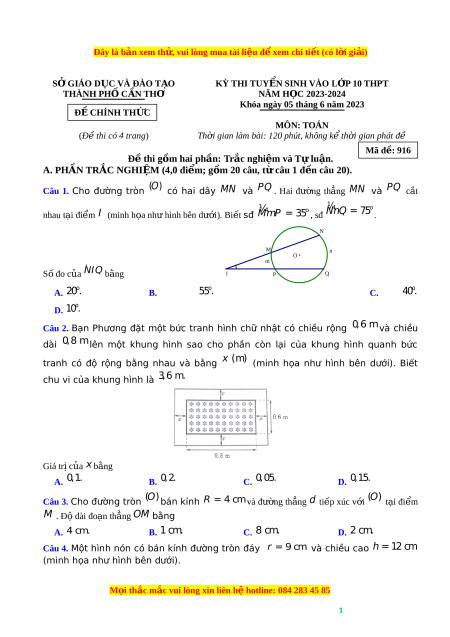 Đây là bản xem th , vu ử i lòng mua tài li u ệ đ xe ể m chi ti t ế (có l i ờ gi i ả ) SỞ GIÁO D C Ụ VÀ ĐÀO T O Ạ KỲ THI TUY N Ể SINH VÀO L P Ớ 10 THPT THÀNH PH C Ố N Ầ THƠ NĂM HỌC 2023-2024