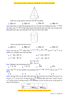 Câu 5. Bác Bảy có một khối gỗ dạng hình trụ với bán kính đường tròn đáy r = 6 cm