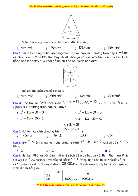 ệ otline: 084 283 45 85 Trang 2/11 - Mã đ ề 916